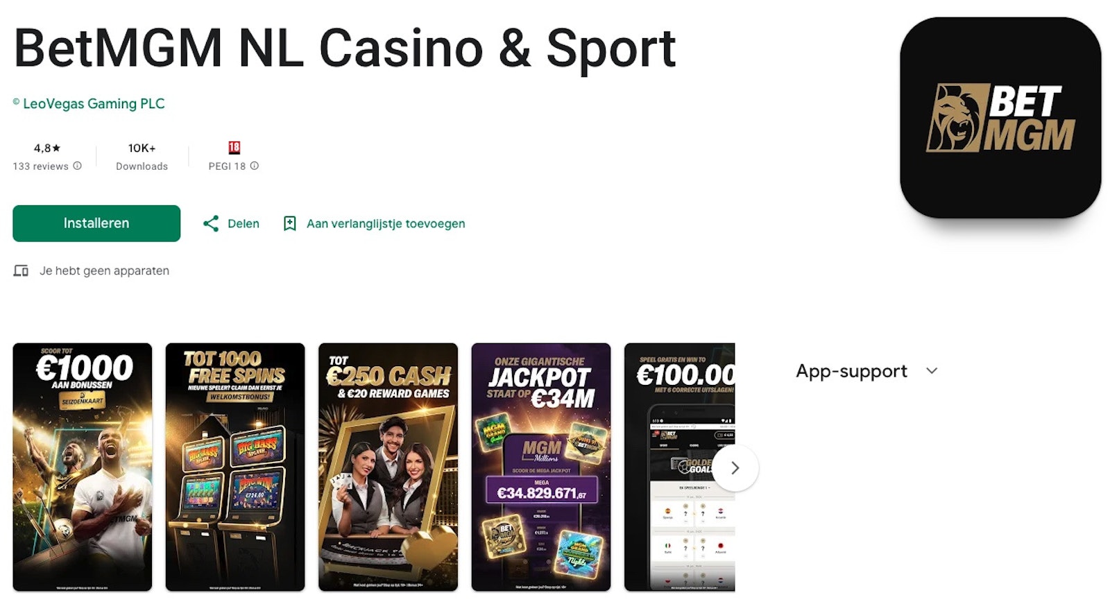 - BetMGM casino - online sinds 29 april 2024