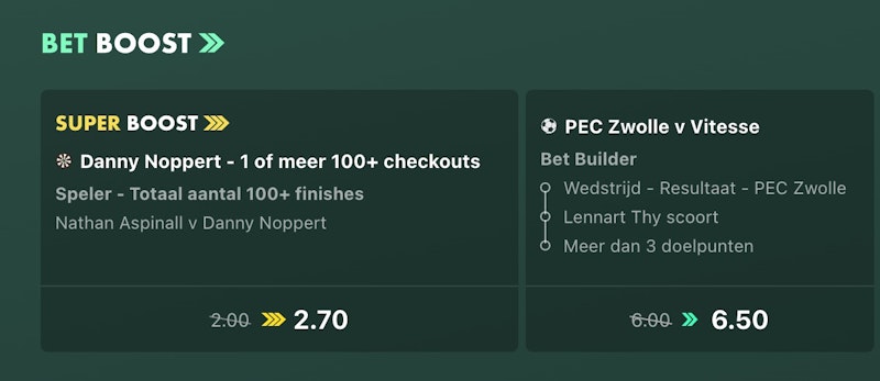 - Bet Boosts zijn alleen beschikbaar voor spelers van tenminste 24 jaar oud die woonachtig zijn in Nederland en geen CRUKS registratie hebben.