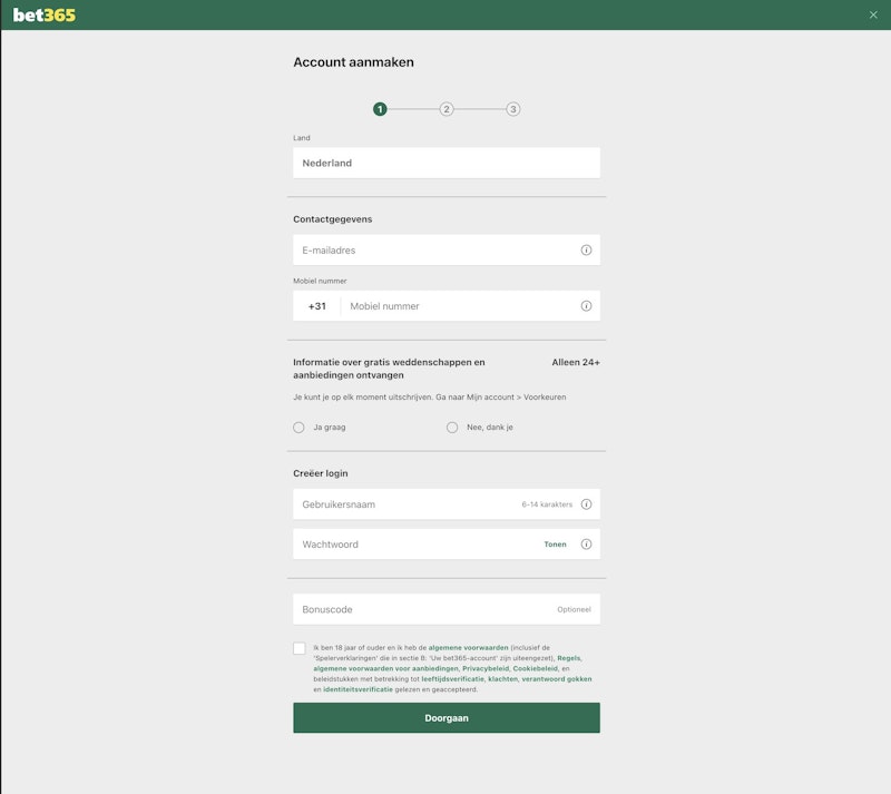 Hulp nodig met registeren? In onze Bet365 review vind je meer info over het registratieproces. Volg daarna het stappenplan hieronder.