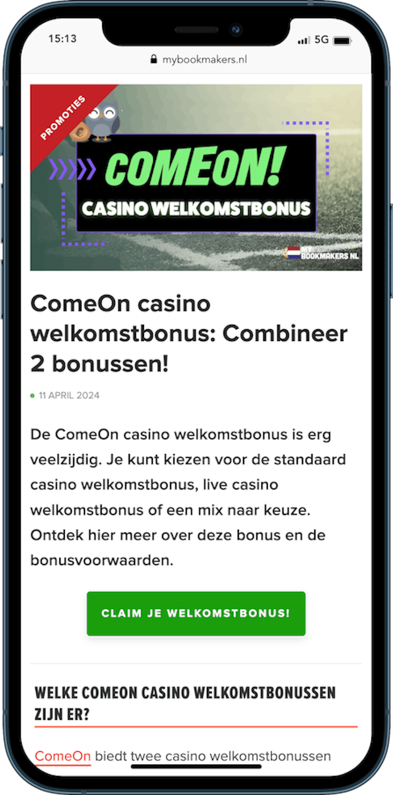 ✅ Veel vrijheid. Door de combinatie mogelijkheid van de standaard- en live casino bonussen is de ComeOn welkomstbonus erg flexibel. Dit geeft je de ruimte om de bonus perfect af te stemmen op je wensen.