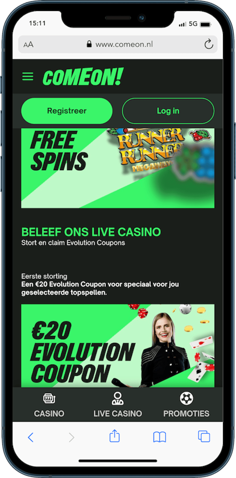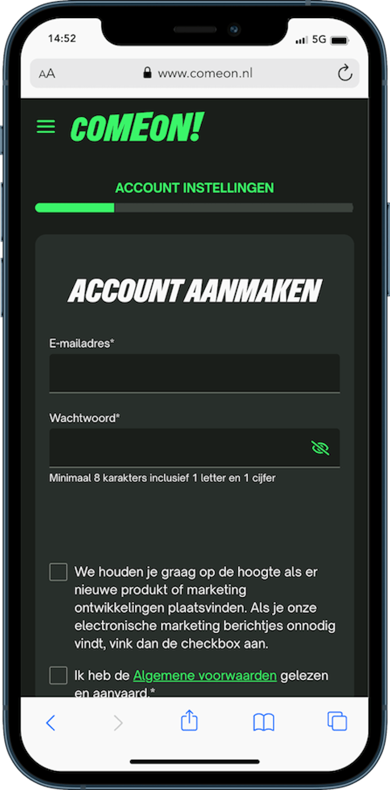 Maak nu een account aan bij ComeOn. Hiervoor doorloop je eenvoudig het registratieproces. Meer informatie over het registratieproces vind je op onze ComeOn welkomstbonus pagina.