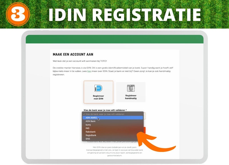 Registratie maakt het registratieproces een stuk eenvoudiger dan als je kiest voor handmatige registratie. Maar natuurlijk kan je er bij TOTO ook voor kiezen om je handmatig te registreren. Hou er wel rekening mee dat je dan veel informatie moet invullen die met IDIN registratie al voor je wordt ingevuld.