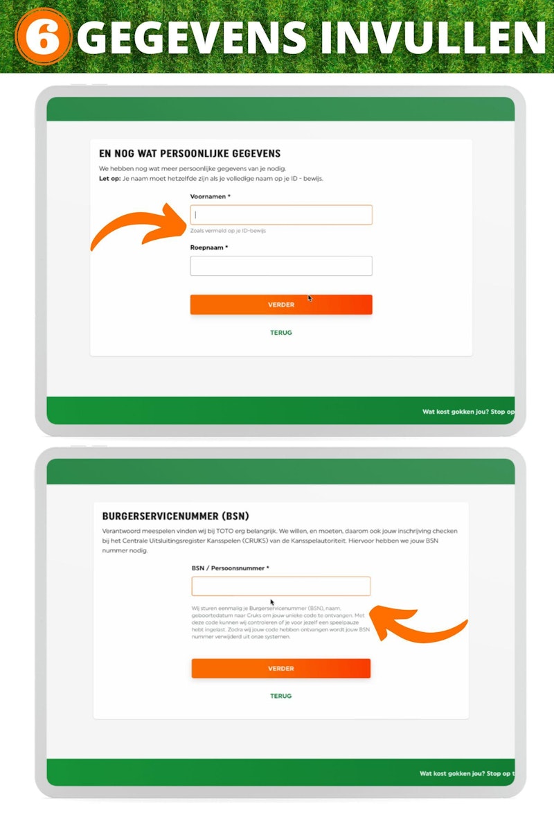 Je Burgerservicenummer (BSN), naam en geboortedatum wordt eenmalig doorgestuurd naar Cruks. Dit is het Centraal Register Uitsluiting Kansspelen. Hier wordt gecontroleerd of je voor jezelf een speelpauze hebt ingelast. Als dit het geval is, kan je voorlopig nog niet spelen. TOTO geeft aan dat je BSN uit hun systeem verwijderd wordt zodra de controle is voltooid.