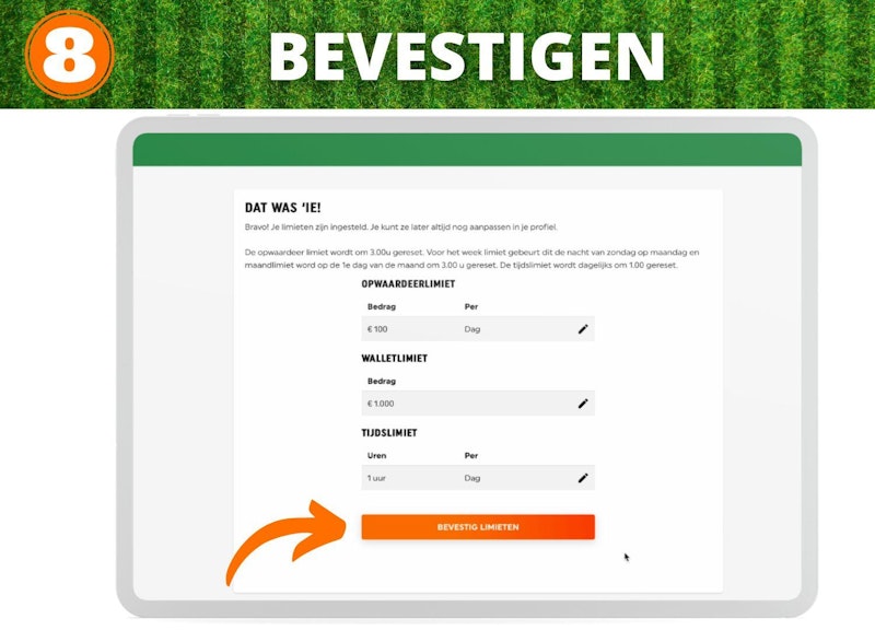 Nadat je de drie limieten hebt ingesteld krijg je een overzicht van de door jouw opgegeven limieten te zijn en bevestig je deze door op de ‘Bevestig limieten’ knop te drukken.