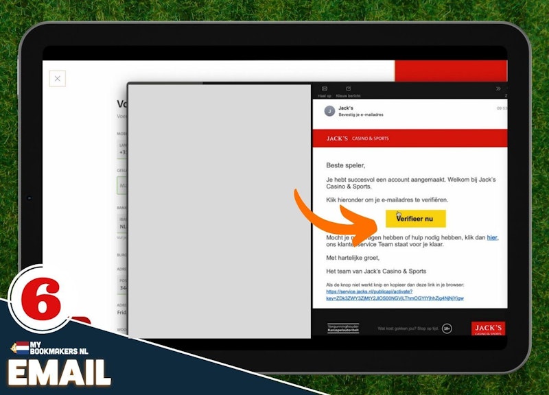 Jack´s stuurt je nu een mailtje met daarin een verificatie knop. Zoals je op de afbeelding ziet is dit de gele knop ´verifieer nu´.