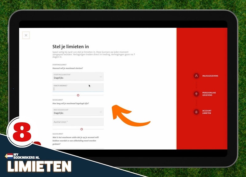 Nu is het tijd om je speellimieten in te stellen. Je geeft heirbij je stortingslimiet op en je sessielimiet.